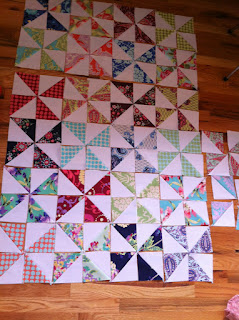 Sunday was supposed to be a rest day, however, hubbee and I hiked about 8-9 miles with our dogs. I did jump in the alpine lake--my favorite type of icebath! Monday was a yoga day (thank god!!) so I locked myself in the sewing room and worked on my pinwheel quilt. The top is really coming together. I am going to put gray strips in between each pinwheel and still need to figure out the backing and a binding fabric...